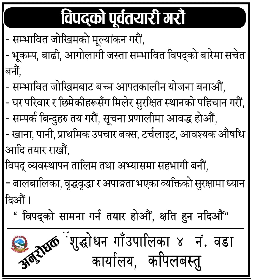 यशोधरा गाउँपालिका आगलागी तथा बाढी–डुबानको उच्च जोखिममा रहेकाले, गाउँ विपद् व्यवस्थापन समितिको सहकार्यमा समुदायको प्रतिकूल अवस्थासँग जुध्ने क्षमता अभिवृद्धि गर्ने उद्देश्यले सामग्री हस्तान्तरण गरिएको जनाइएको छ।