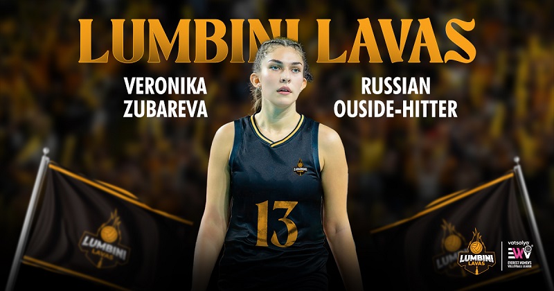 काठमाण्डौ – एभरेस्ट महिला भलिबल लिगको फ्रेन्चाइज टोली लुम्बिनी लाभाजले रसियन खेलाडी भेरोनिका जुवरेभलाई अनुबन्ध गरेको छ । नेपाल भलिबल सङ्घको सहकार्यमा इन्फिनिटी ड्रिम्स प्रा. लि. ले आयोजना गर्ने प्रतियोगितामा लुम्बिनीले रसियाकी आउटसाइड हिटर जुवरेभलाई अनुबन्ध गरेको हो ।
