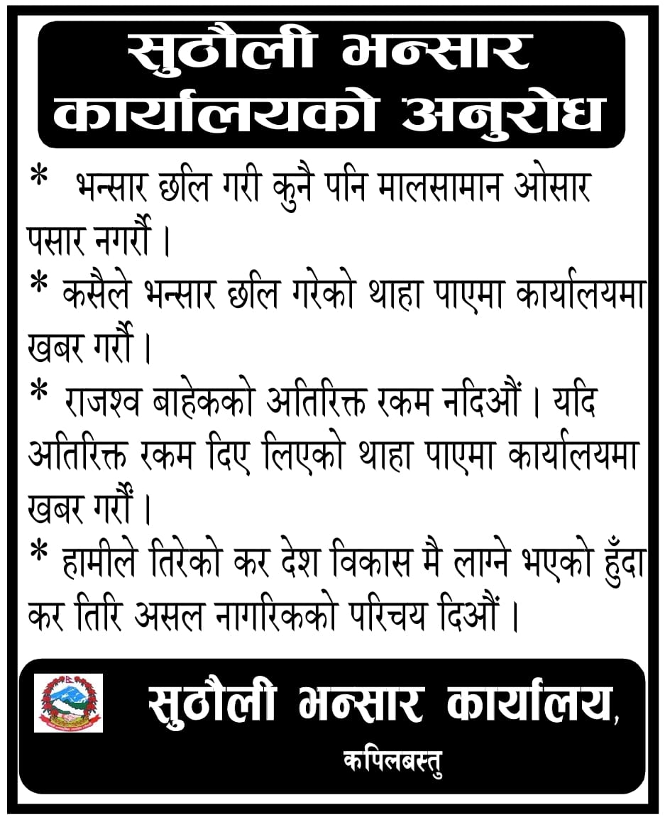 उहाँका अनुसार बाँकेको सुइया बगौडास्थित कटकुइया, नरैनापुर, भगवानपुर, खडैचा होलिया, हिरमिनियाको भघोटना, साई गाउँ र साइगाउँ पश्चिमतर्फको उढरापुर नाकामा पहिले रहेका छोटी भन्सार कार्यालयहरु पुन सञ्चालन गर्नु अति आवश्यक भएको छ ।