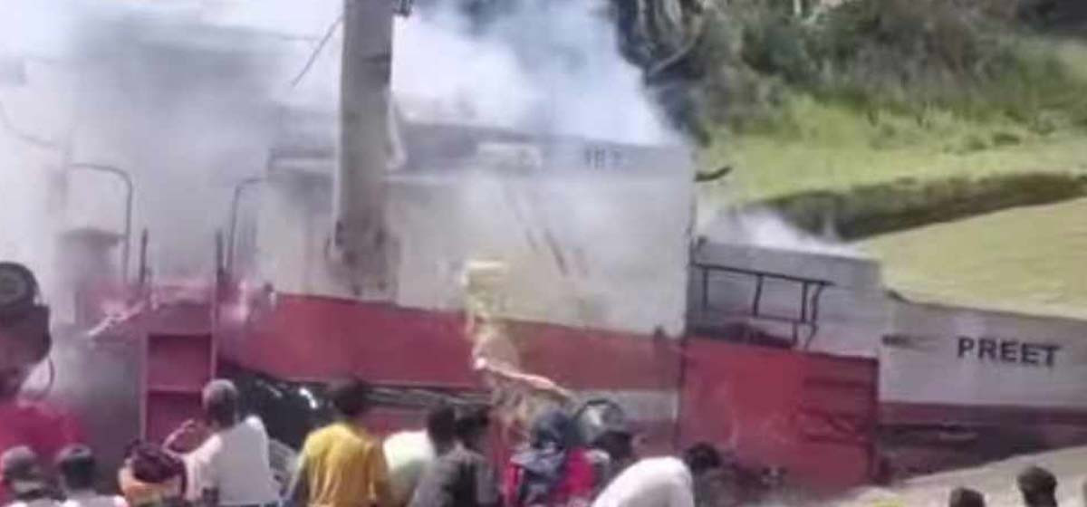 मेसिन ‘सर्ट’ भई गहुँ खेतमा आगलागी: २० बिघाको बाली स्वाहा, मेसिनलाई पोखरीमा डुबाएर बचाइयो